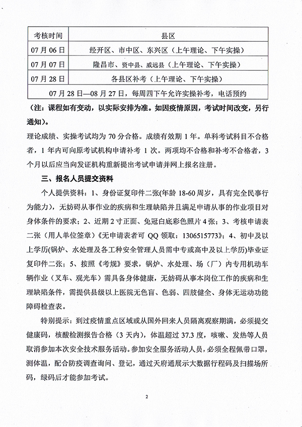 2022年春生公司02期特種設(shè)備作業(yè)人員考核時(shí)間安排